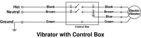 Instalación completa entre el vibrador la caja de contactor y el cable de energía. |